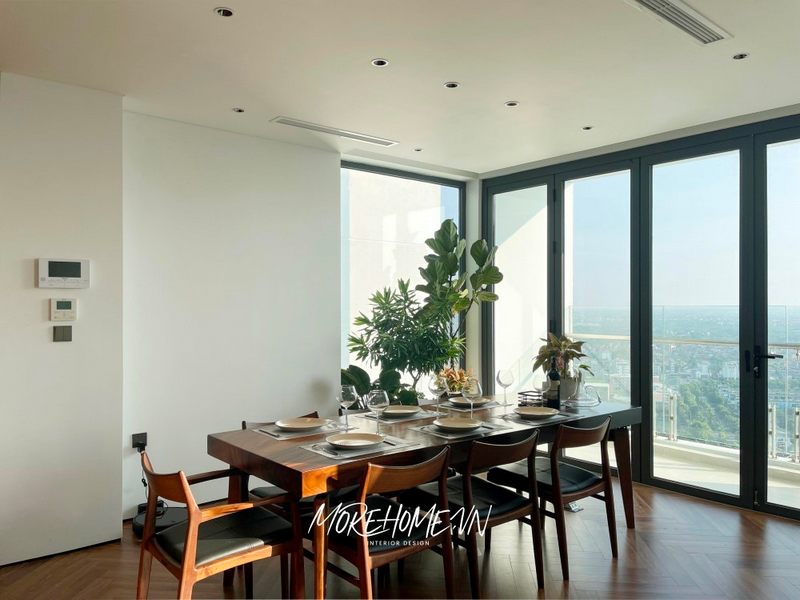 Ngoài ra, ánh sáng cũng đóng vai trò quan trọng trong việc tạo dựng bầu không khí sang trọng. Hãy cân nhắc lắp đặt đèn chùm hoặc đèn treo có thiết kế độc đáo, kết hợp với ánh sáng tự nhiên từ cửa sổ để làm nổi bật vẻ đẹp của các yếu tố thiên nhiên trong phòng ăn. Cuối cùng, việc sử dụng bộ đồ ăn bằng sứ cao cấp hay thủy tinh trong suốt sẽ nâng tầm trải nghiệm ẩm thực của bạn, khiến mỗi bữa ăn trở nên đặc biệt hơn trong không gian đã được chăm chút này.